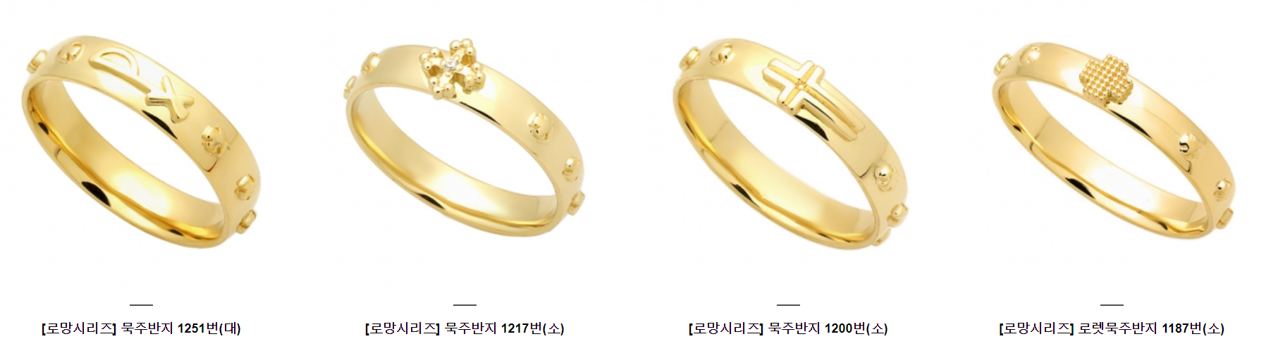 '첫영성체 선물' 묵주반지는 다양한 디자인으로 구성되어 있습니다.