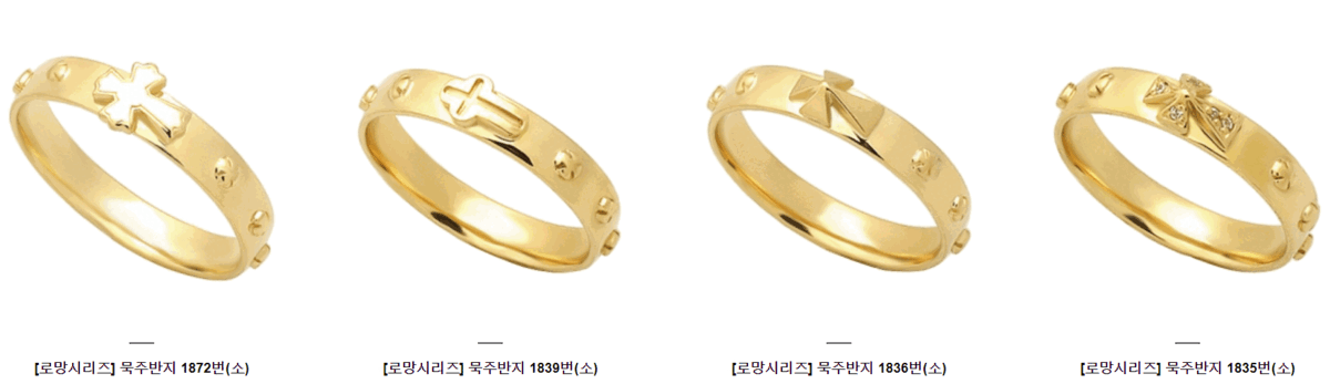 우리의 묵주 반지 컬렉션에는 다양한 디자인과 스타일의 제품들이 준비되어 있습니다.